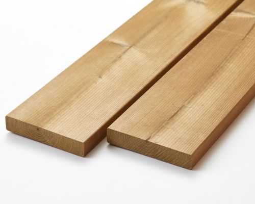 Træet leveres med en smuk gylden til brunlig glød og vil naturligt patinere til en elegant sølvgrå nuance. Ønskes den varme farve bevaret, kan brædderne behandles med en UV-beskyttende olie efter behov.